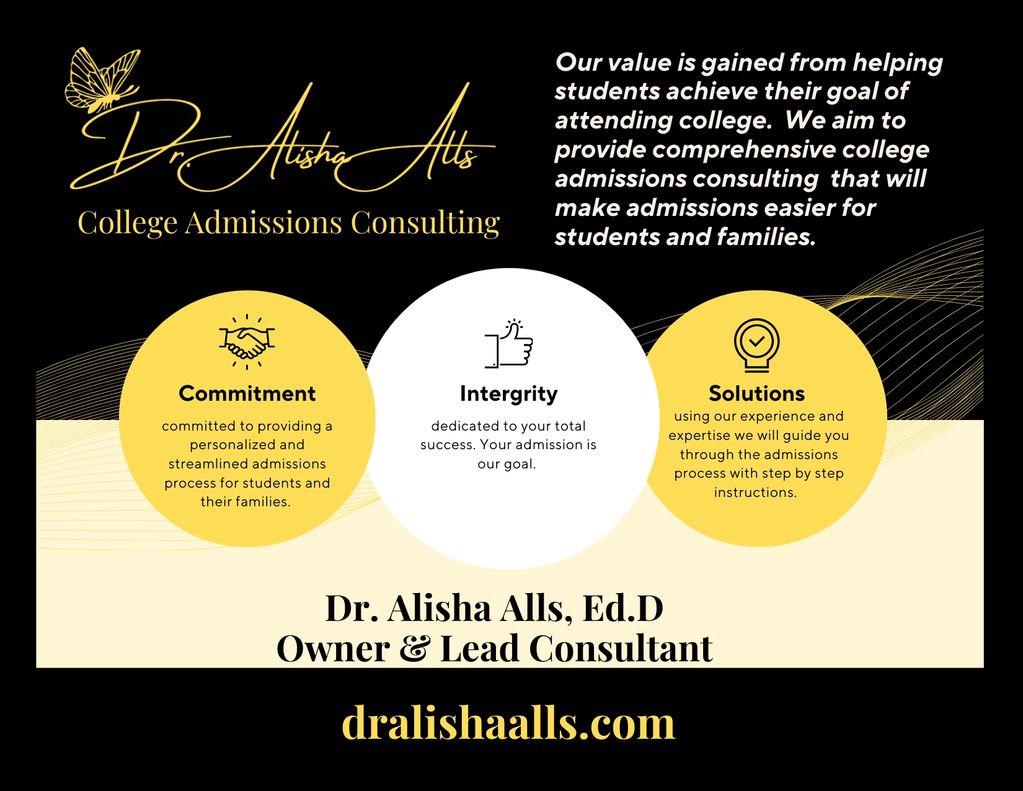 Dr. Alls provides personalized college admissions consulting to assist students and families navigate the college admissions process. Please fill out the form below and someone will contact you within 48 hours to schedule a free consultation.